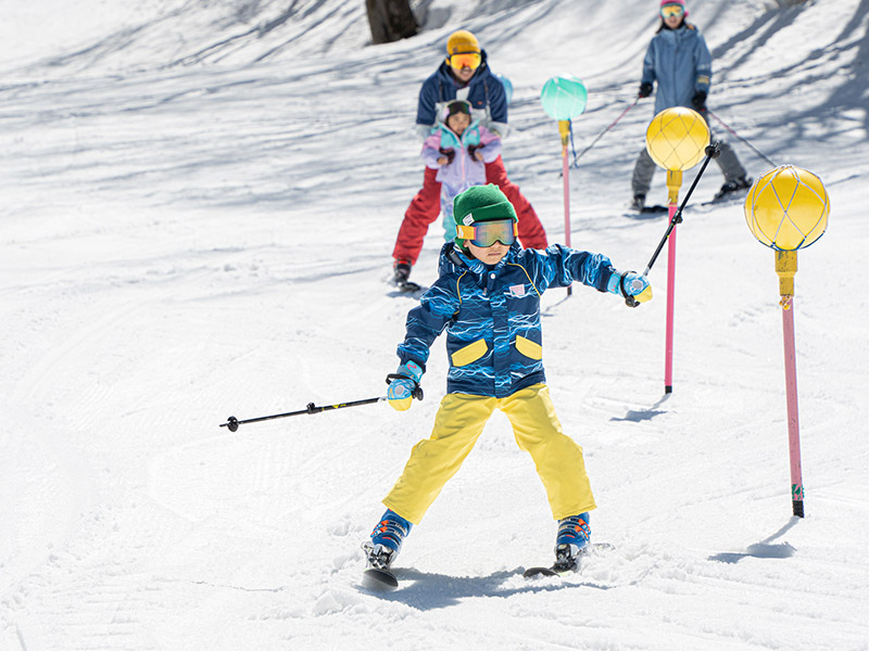 「すいすいファミリーコース」の途中から入れる、人気のゲレンデアトラクション「スラローム」はここにあるよ!